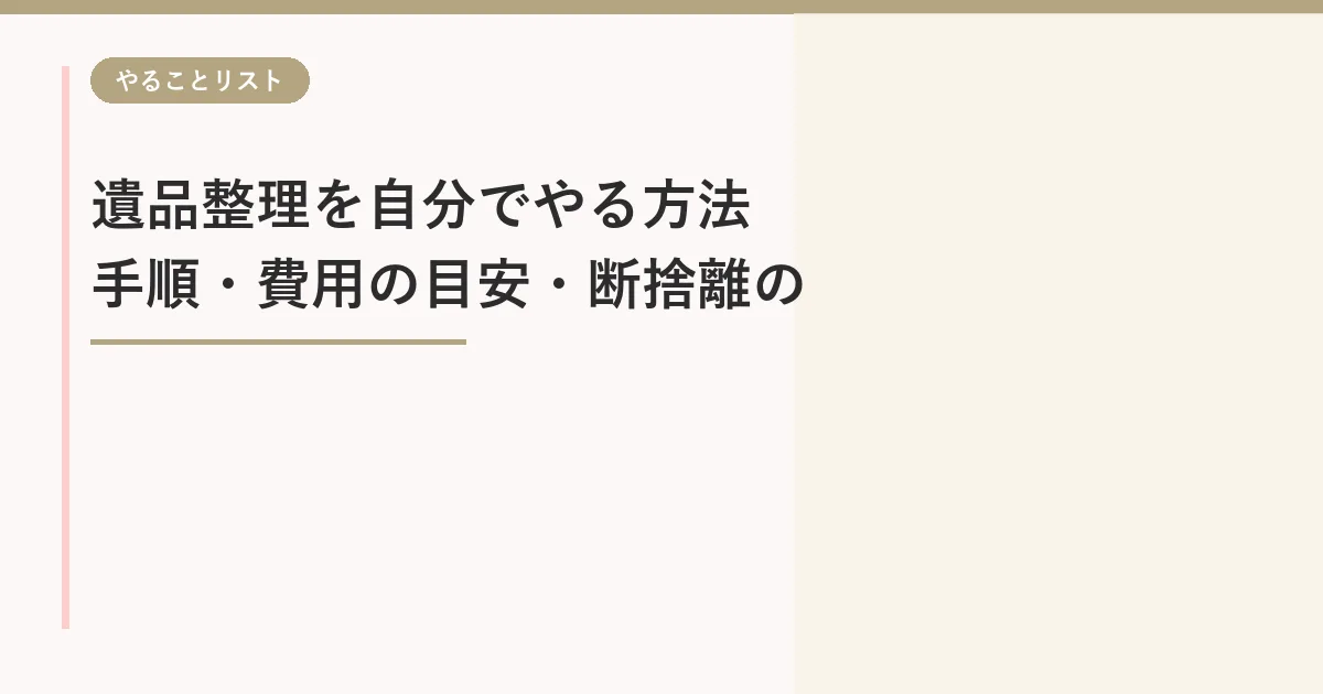 遺品整理を自分でやる方法【手順・費用の目安・断捨離のコツを解説】