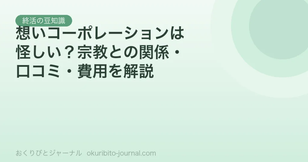 想いコーポレーション(終活協議会)が怪しいと言われる理由(路上勧誘・FAX)・宗教との関係の有無・心託サービスの費用・口コミを客観的に解説。利用前に確認すべきポイントをまとめました。 相続・手続き