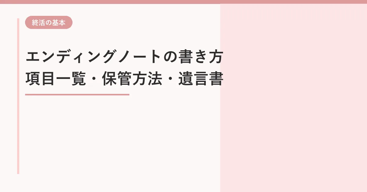 この記事では、書くべき項目を5カテゴリで整理し、書き方のコツ・市販ノートの選び方・遺言書との違いを解説します。A4の紙1枚でも始められます。