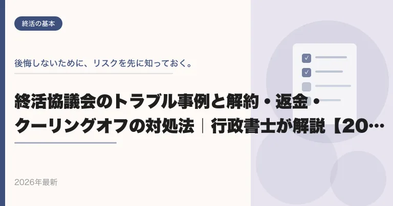終活協議会のトラブル事例と解約・返金・クーリングオフの対処法|行政書士が解説【2026年最新】