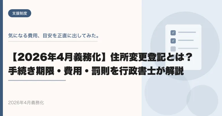 2026年4月から義務化された住所変更登記の手続き期限・費用・罰則を行政書士が解説。3つの申請方法と過料を避けるための確認ポイントをまとめました。 -