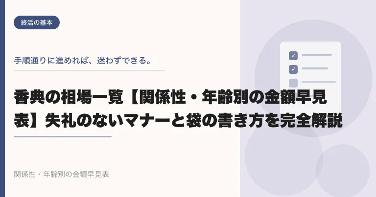 香典の相場一覧【関係性・年齢別の金額早見表】失礼のないマナーと袋の書き方を完全解説