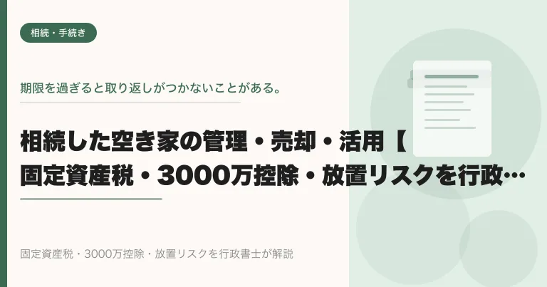 相続した空き家の管理・売却・活用【固定資産税・3000万控除・放置リスクを行政書士が解説】